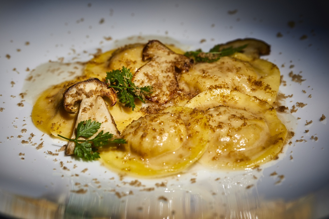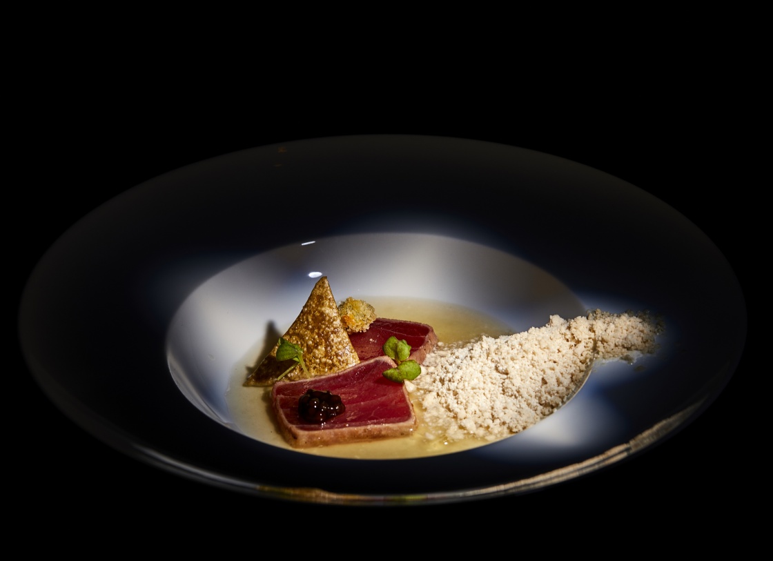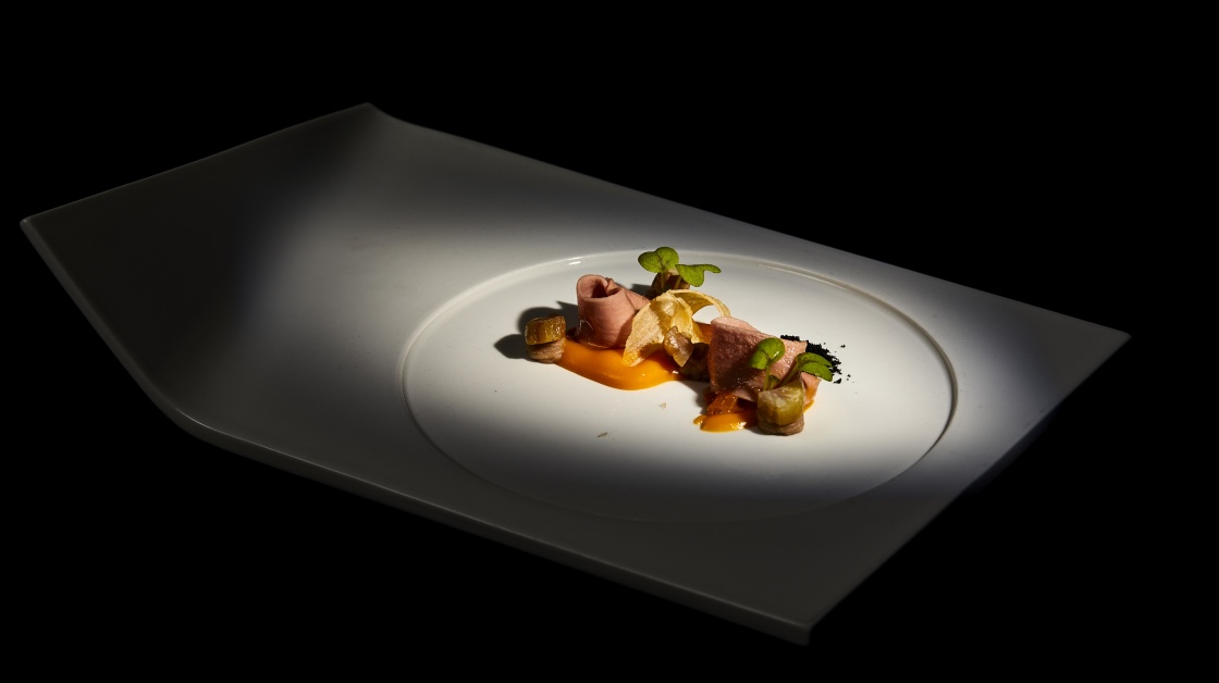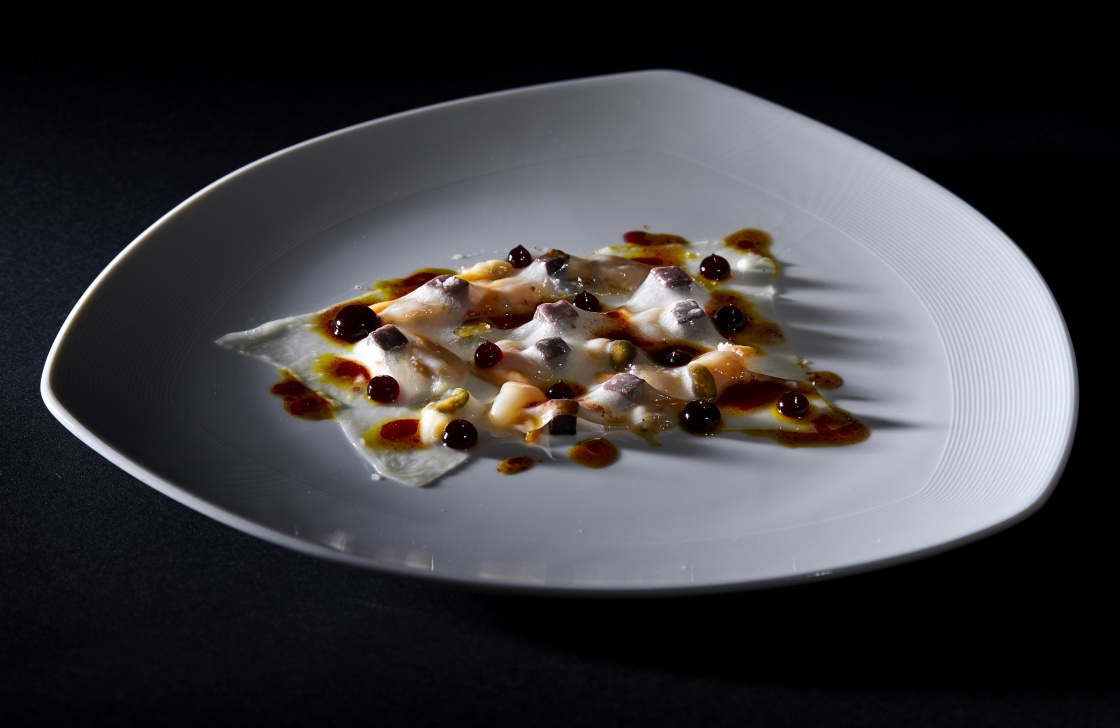 Host Beck followed with a trio of delectable dishes: scallop carpaccio served with white truffle (served with a 2011 Muros de Melgaço Vinho Verde chosen by hosting sommelier António Lopes); the chef’s famous Tonno Tonnato (with a Douro wine, a 2013 Somnium, from Sérgio Antunes); and duck ravioli with pine tree needle-infusion and lyophilised porcini mushroom (paired with a selection from André Figuinha, the 2014 Pai Abel from Bairrada).