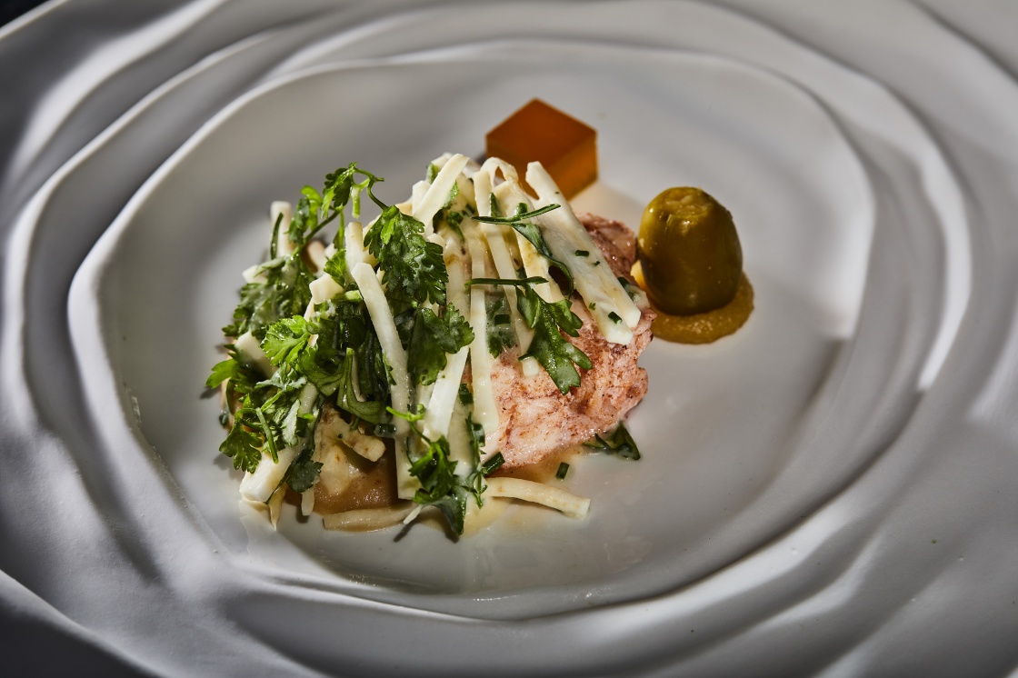 In truth, there were more Michelin chefs present on the opening night, albeit at the dinner table rather than in the kitchen, but the spotlight was on the chefs from the Waldorf Astoria and Hilton families. Following the amuse-bouches, it was Sidney Schutte who commenced proceedings with cockles and black currant, black pudding, pistachios and mangalica, a dish he created to blend Portuguese cuisine with his own style and which fellow guest chef Matt Tebutt praised as a unique combination. As each dish was paired with a different wine purposely selected by a member of the prestigious Portuguese sommelier team, the first course was paired with a selection from Miguel Mendes: the 2010 Principal Rosé from Bairrada, a choice that amazed the chef so much that he is now considering incorporating Portuguese wines at De Librije.